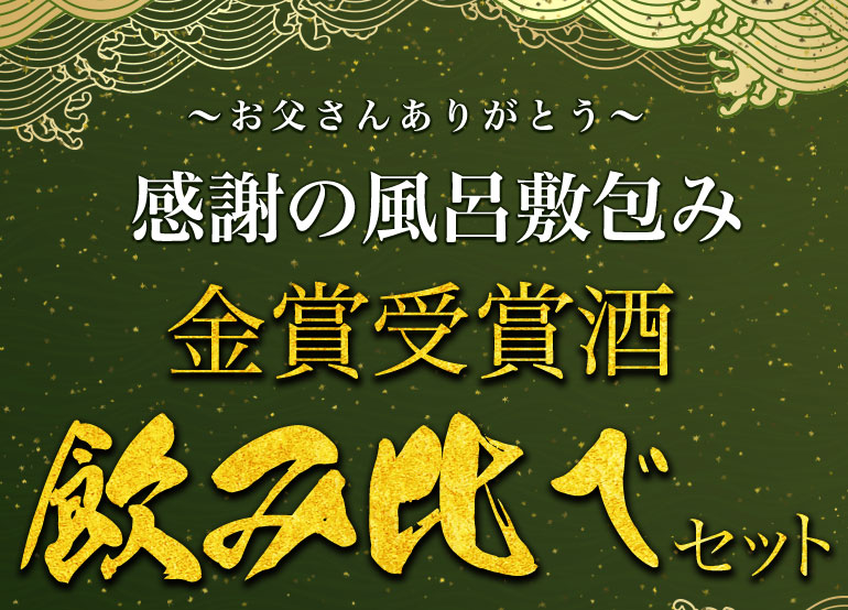 父の日向け日本酒飲み比べセット。風呂敷包みの特別感と金賞受賞酒の品質訴求を両立したギフトページをデザインしました。