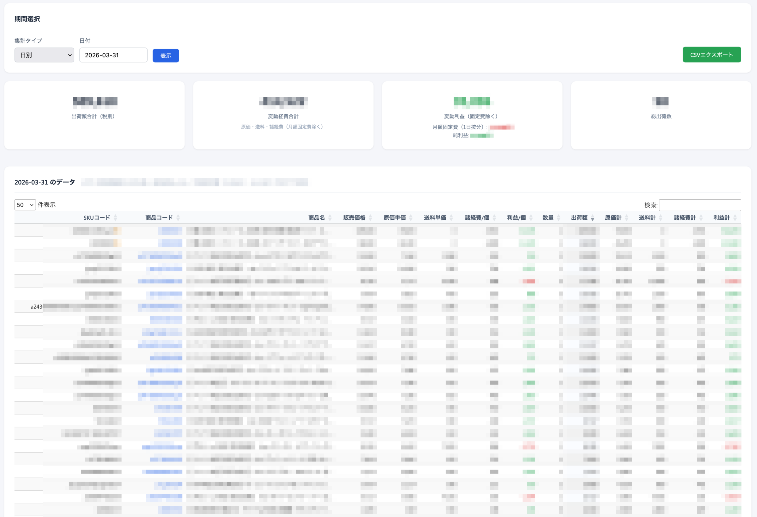 SKU別収益分析・データ閲覧