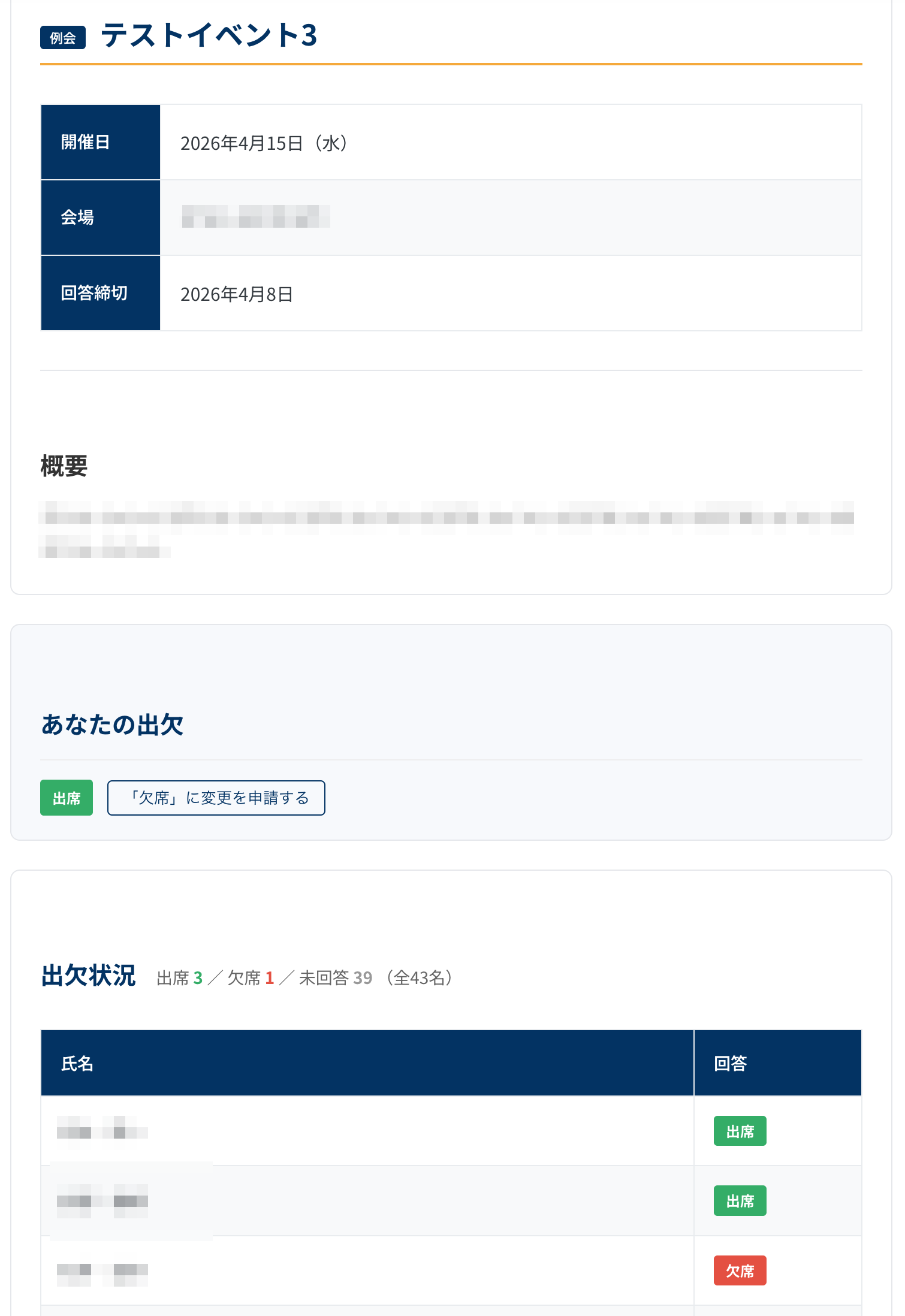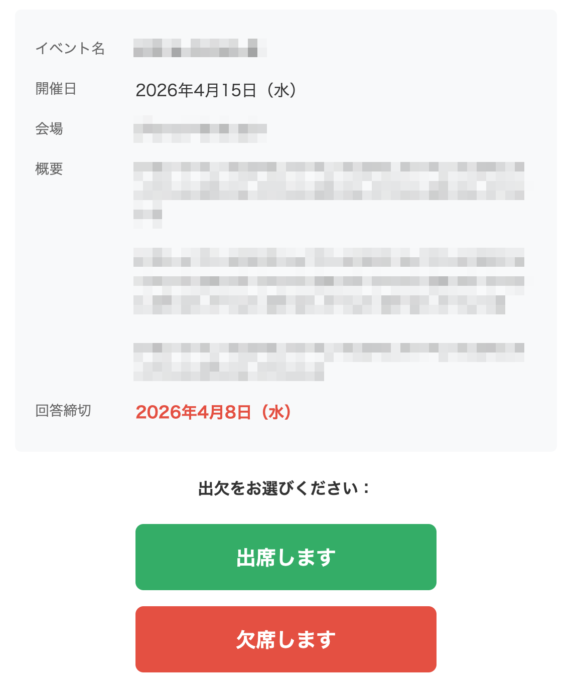 • メール会員はHTMLメールのボタンからワンクリックで出欠登録(ログイン不要)