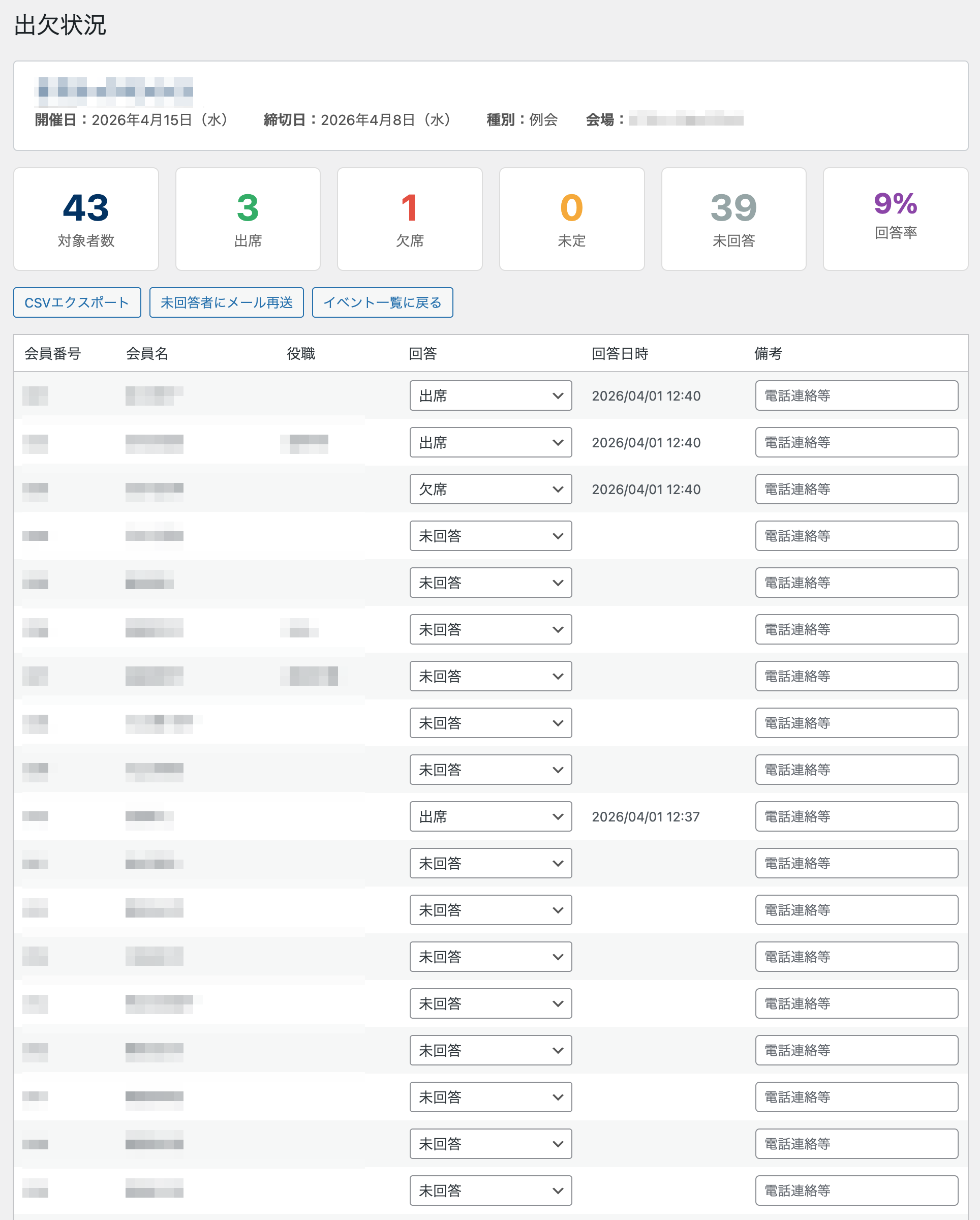 • 未回答者へのリマインダー自動送信(14日前/7日前/3日前)