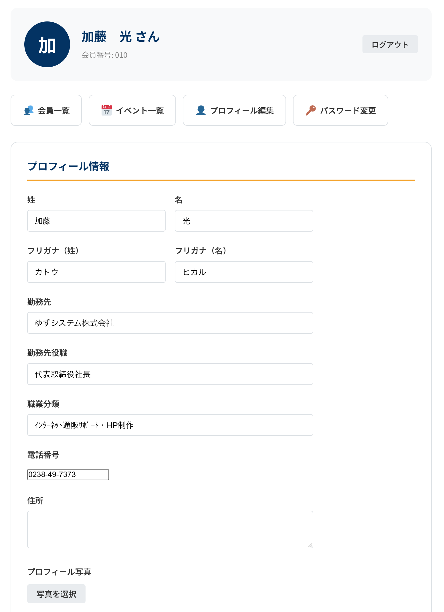 従来は静的HTMLのサイトで、会員管理は手作業、イベントの出欠確認は電話・FAXで個別に連絡していましたが、本プロジェクトにより全てをデジタル化。高齢会員が多い団体のため、シンプルで使いやすいUI設計を最重視しました。
