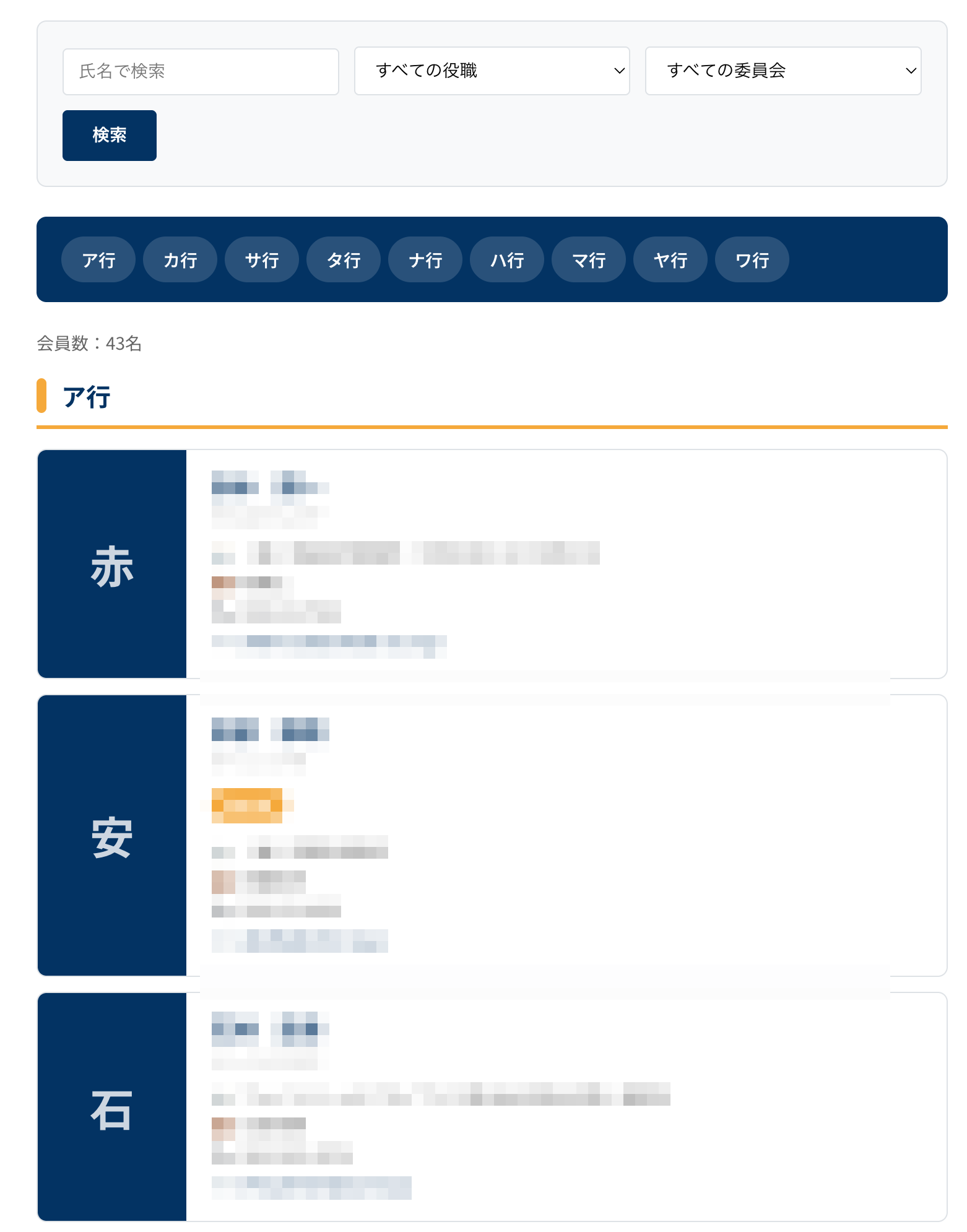 • 会員情報の登録・編集・一覧表示(五十音順グループ表示、検索・フィルター)